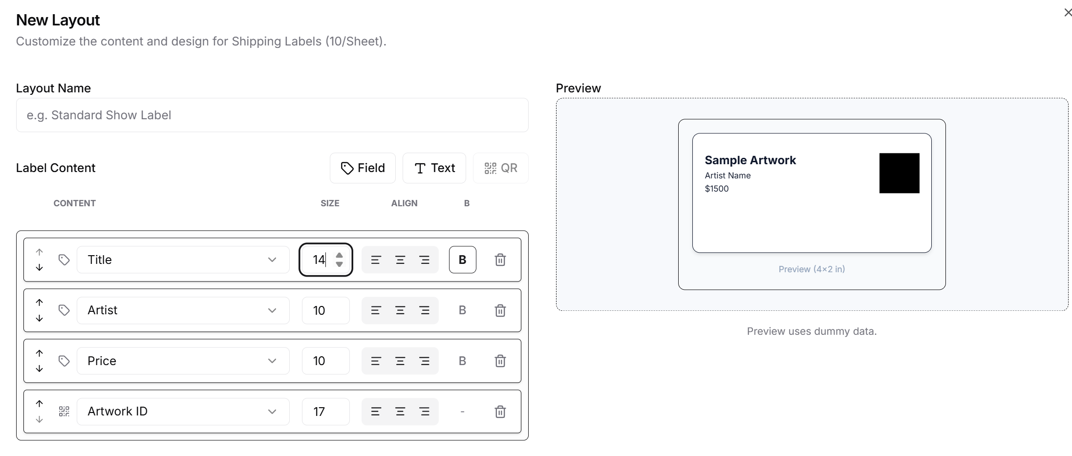If you are using our label feature, you have the option to add a QR code to your labels. This can be used with our scanning features to instantly identify a scanned piece of artwork, where it is, or to reconcile a show after the fact.